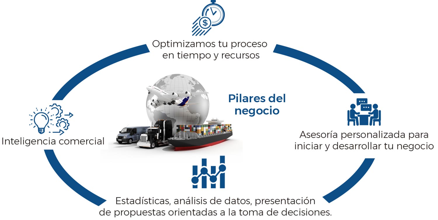 Somos tus aliados en el manejo de operaciones logísticas de Comercio Internacional, contamos con una data de inteligencia comercial y tenemos la finalidad de aplicarla en puntos claves de tu proceso.